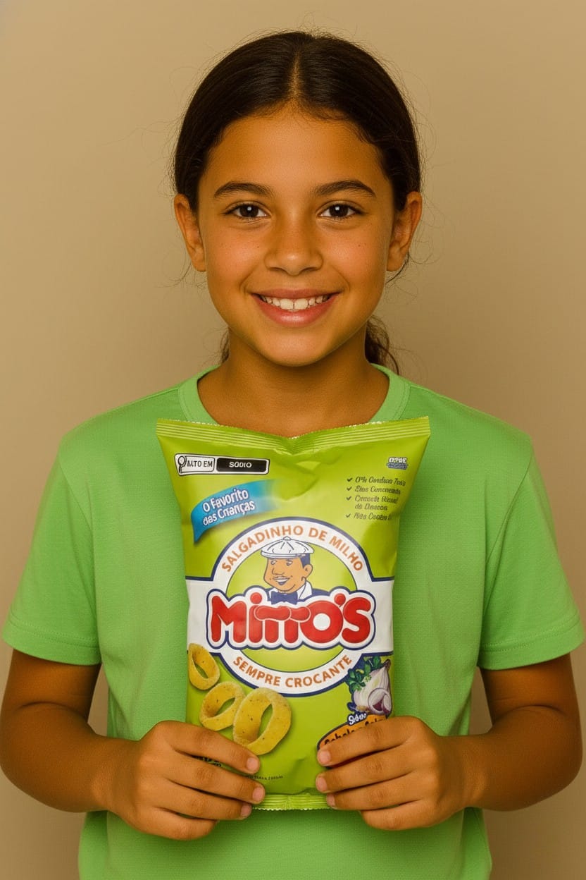 Ingredientes: fubá de milho, óleo de palma, tempero sabor cebola e salsa (substâncias aromatizantes e antiumectantes: INS 300, INS 551), sal refinado, realçador de sabor (INS 621), ácido cítrico, aroma idêntico ao natural de cebola e salsa e corante natural.Contém aromatizante sintético idêntico ao natural.