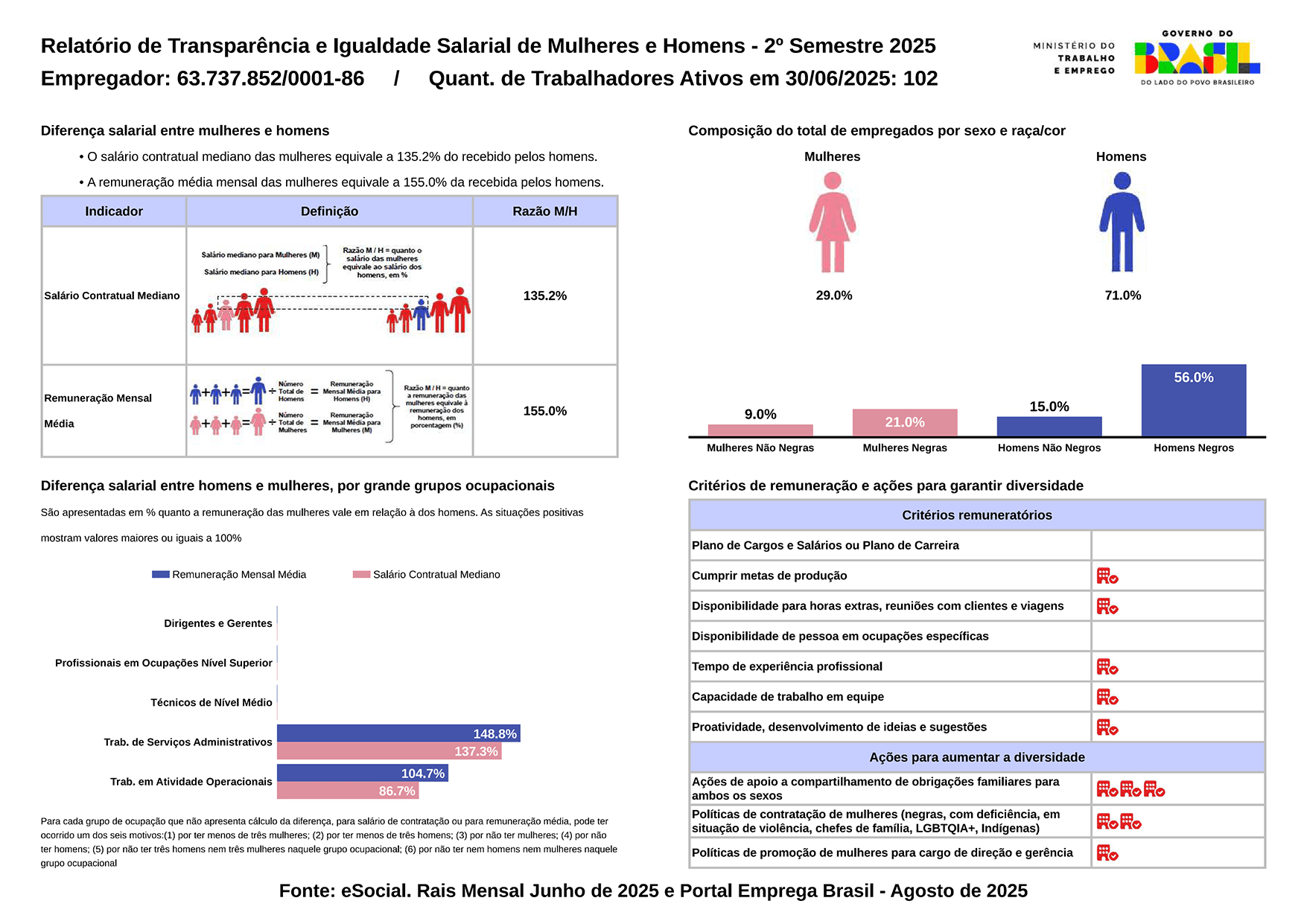 Essa divulgação faz parte de uma obrigação legal estabelecida pela Lei nº 14.611/2023, que determina que empresas com 100 ou mais colaboradores publiquem, de forma semestral, informações sobre remuneração e ações para garantir a igualdade de oportunidades.